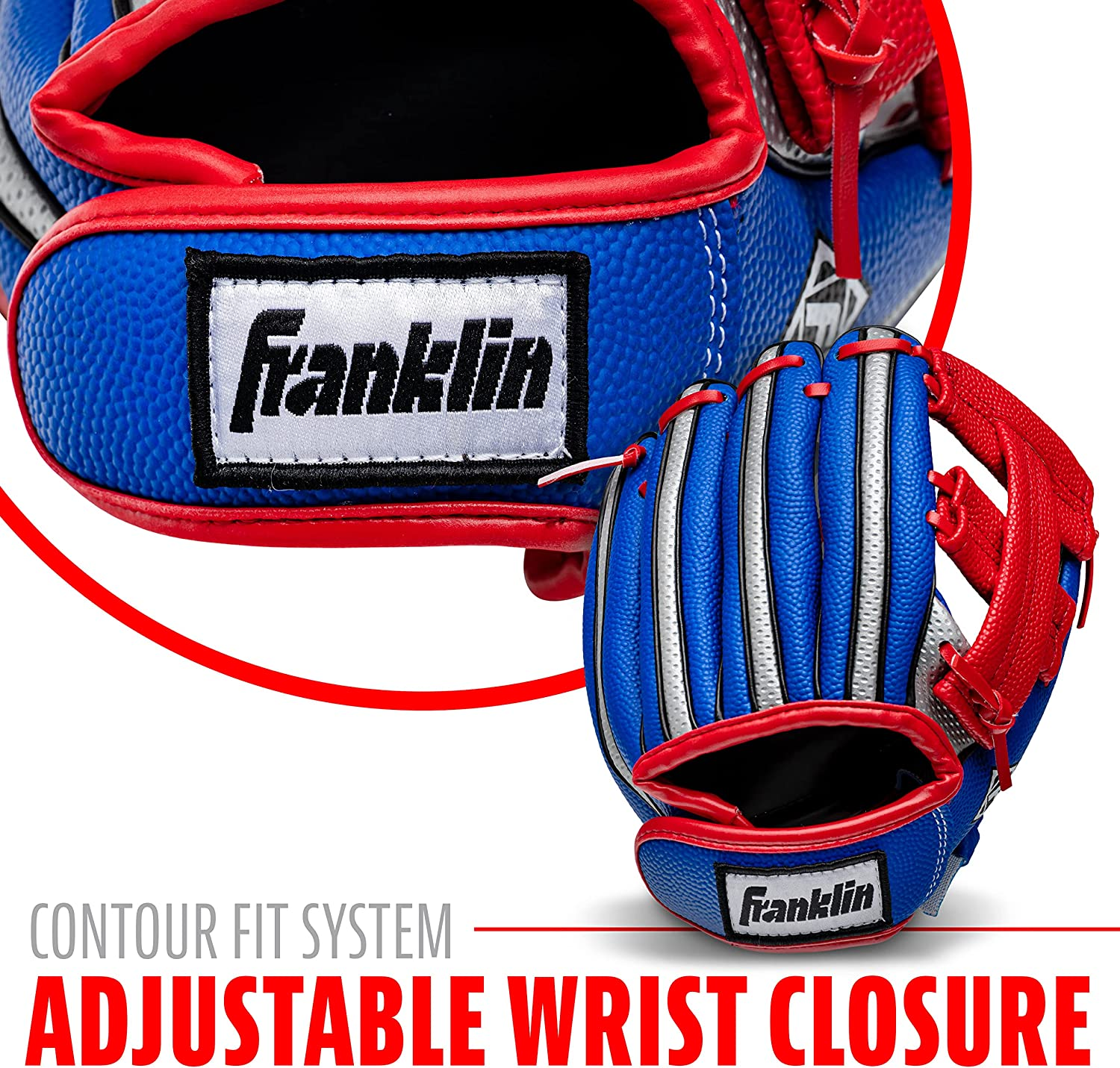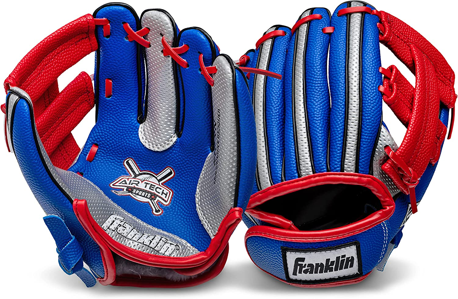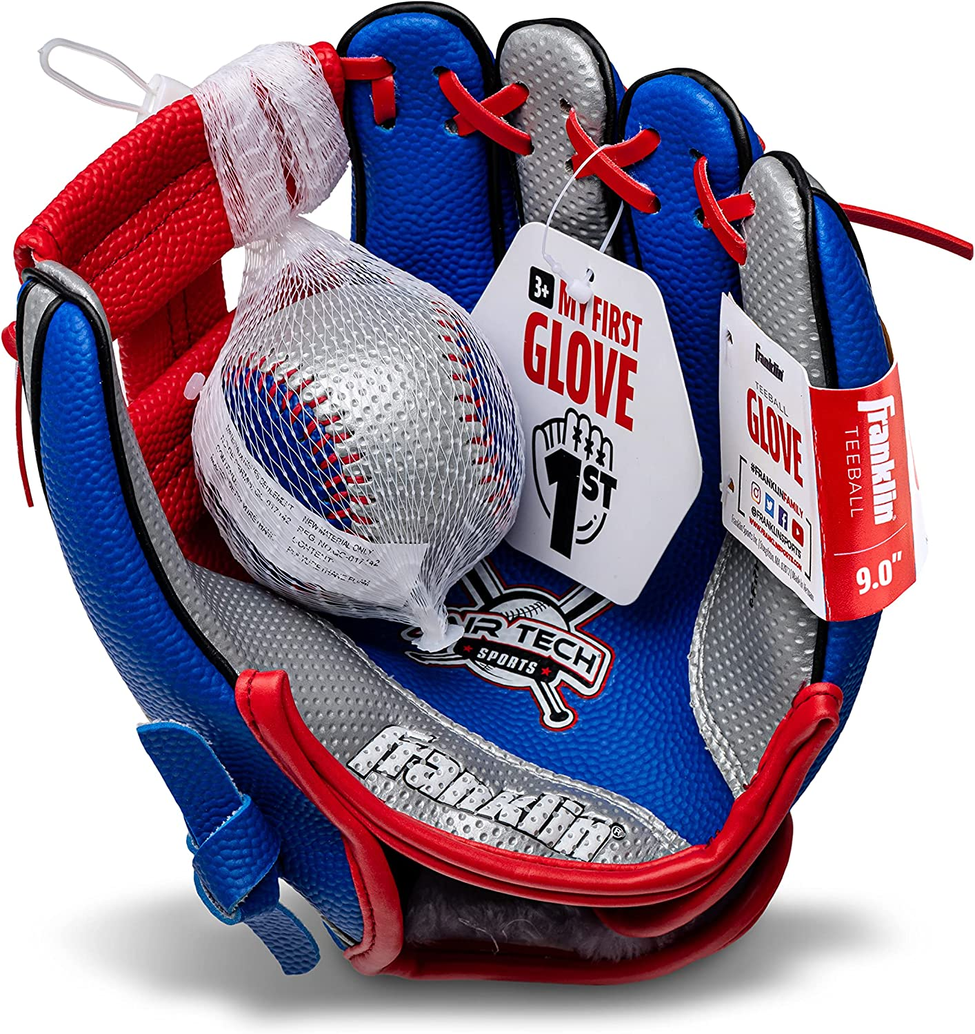 Franklin Sports Kids Baseball Glove + Ball Set - Air Tech Youth Teeball Glove - Boys + Girls Children's Glove + Ball - Right Hand Throw - Red/Blue - 9"