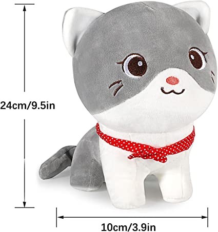 JCWDFLK Kawaii Cat Plush Toy, Cute Super Soft Cat Stuffed Animal Kids Birthday Gift (Grey 9 Inch)