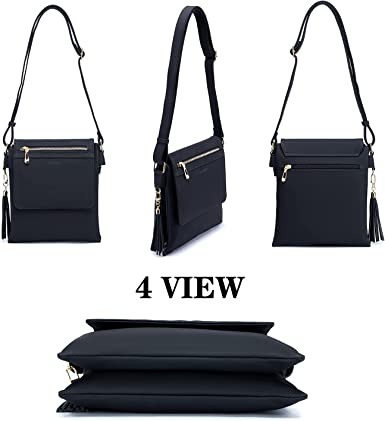 Roulens Women's Leather Crossbody Wallet Double Compartment Large Flap Lightweight Medium Crossbody Bag with Fringe